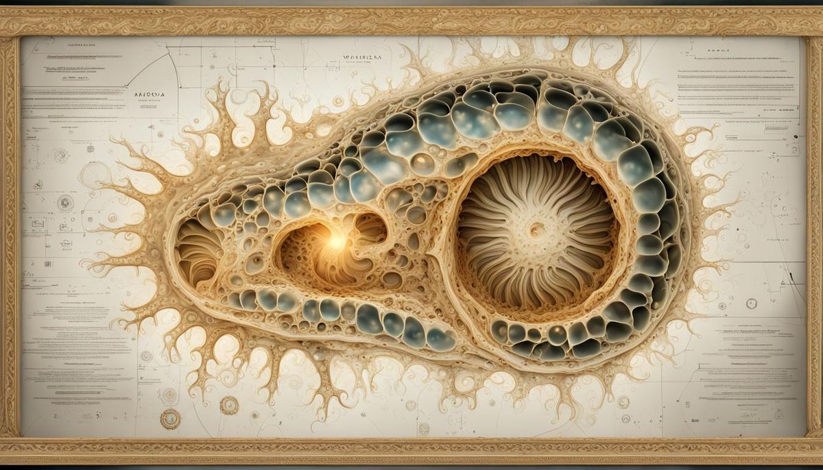This image shows a single amoeba cell, framed using the golden ratio. The image has high dynamic range and intricate details.