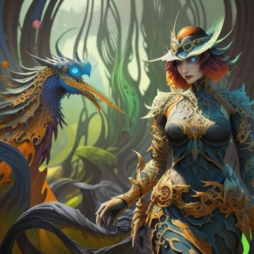 A vibrant abstract image featuring fractals and wave functions in complementary colors and intricate details. The artwork showcases a detailed, fantastical design with 3D shading.