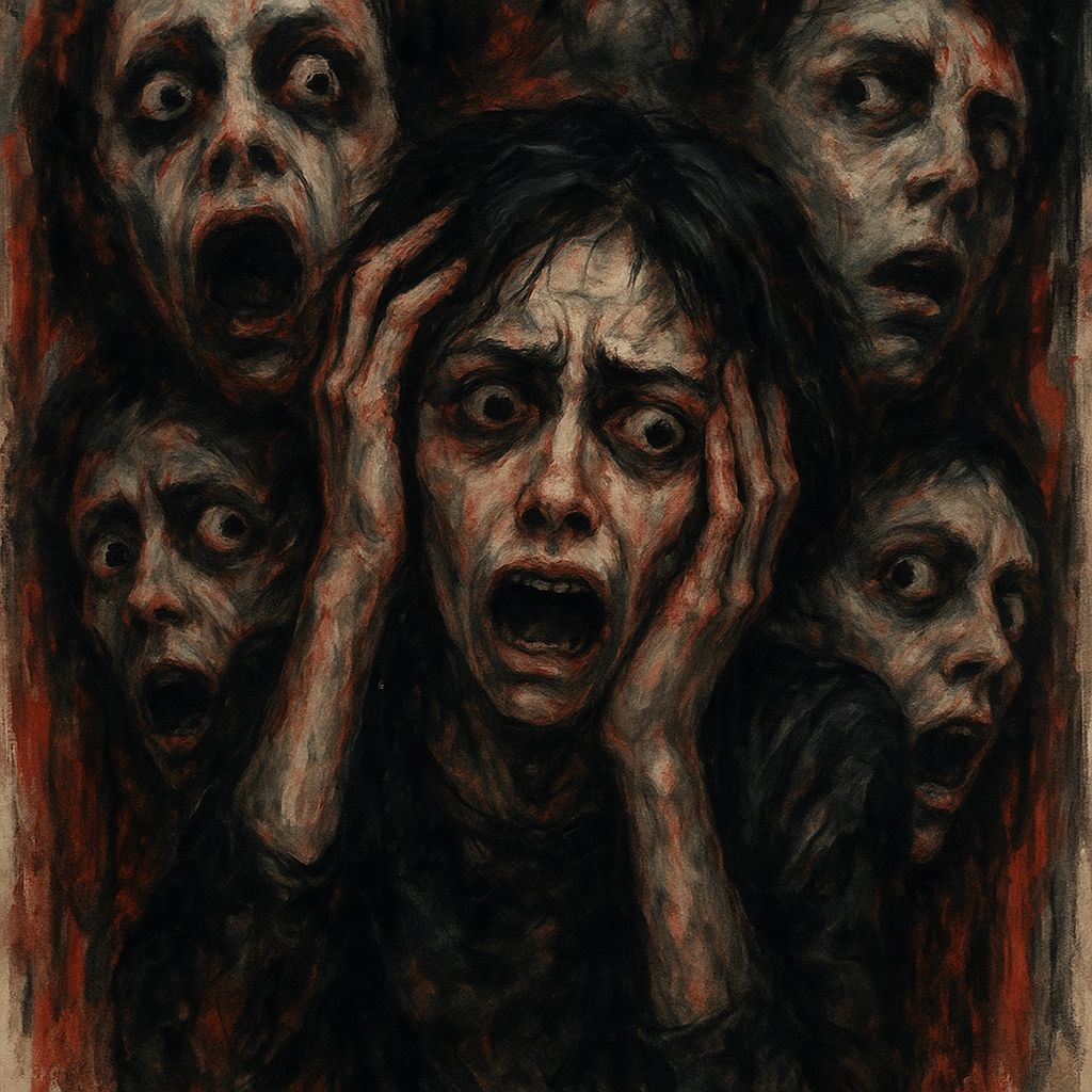 This image is a digital representation of a mind in turmoil, capturing the chaos and disorder of a fragmented reality.