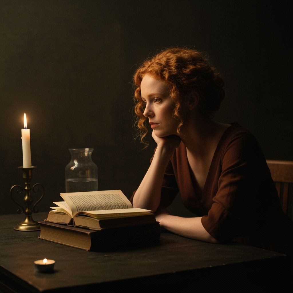 This image shows a solitary figure at a candlelit table enjoying a glass of red wine. The scene is rendered as a cinematic film still with film grain and color grading.