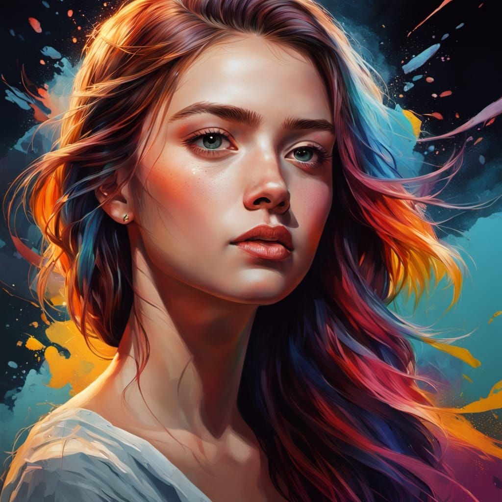 A striking picture of a hyperrealistic female portrait. The image features vibrant colors and intricate details, with dramatic lighting enhancing the composition.