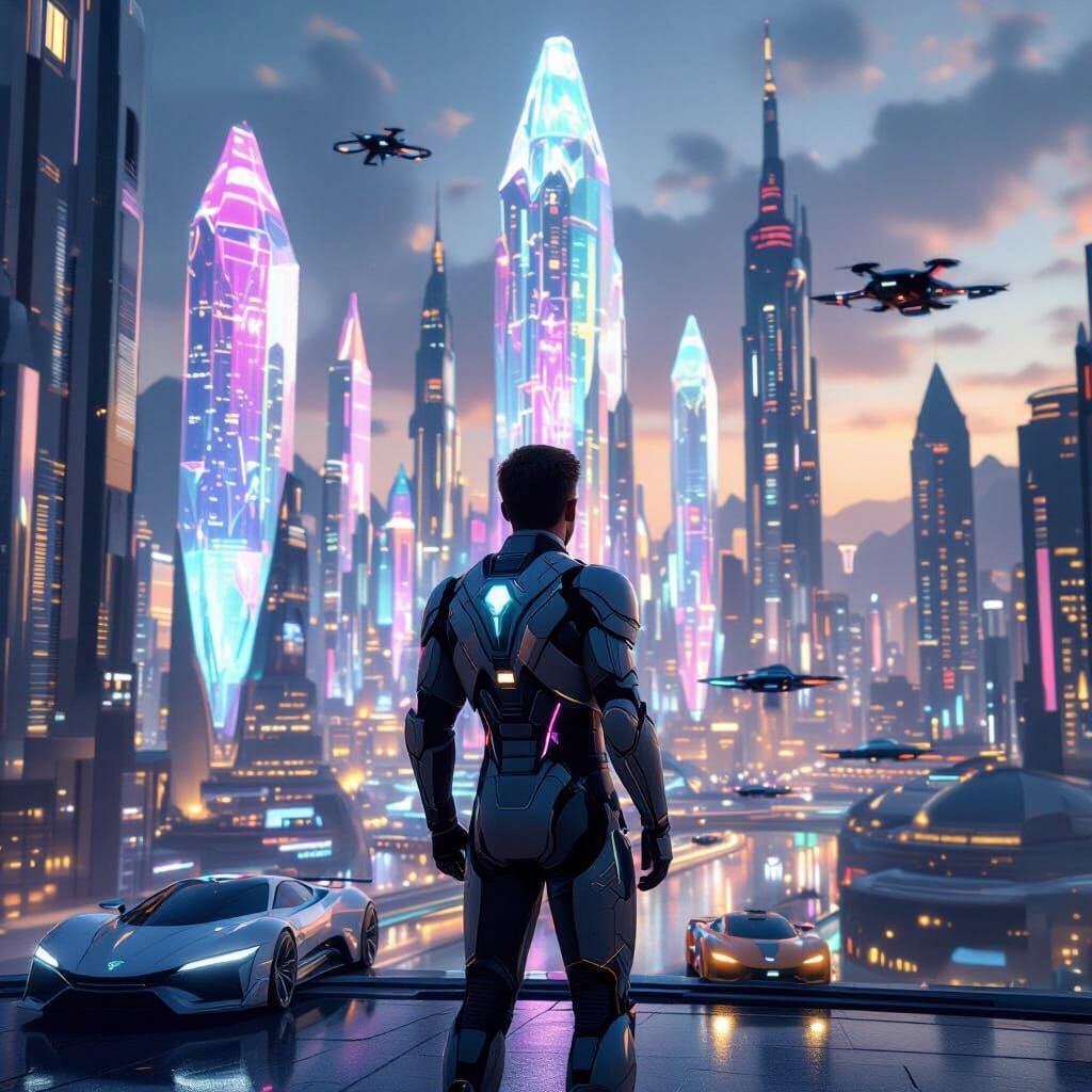 Generate stunning sci-fi scenes with crystal buildings, flying cars, and futuristic characters. It's free and easy!