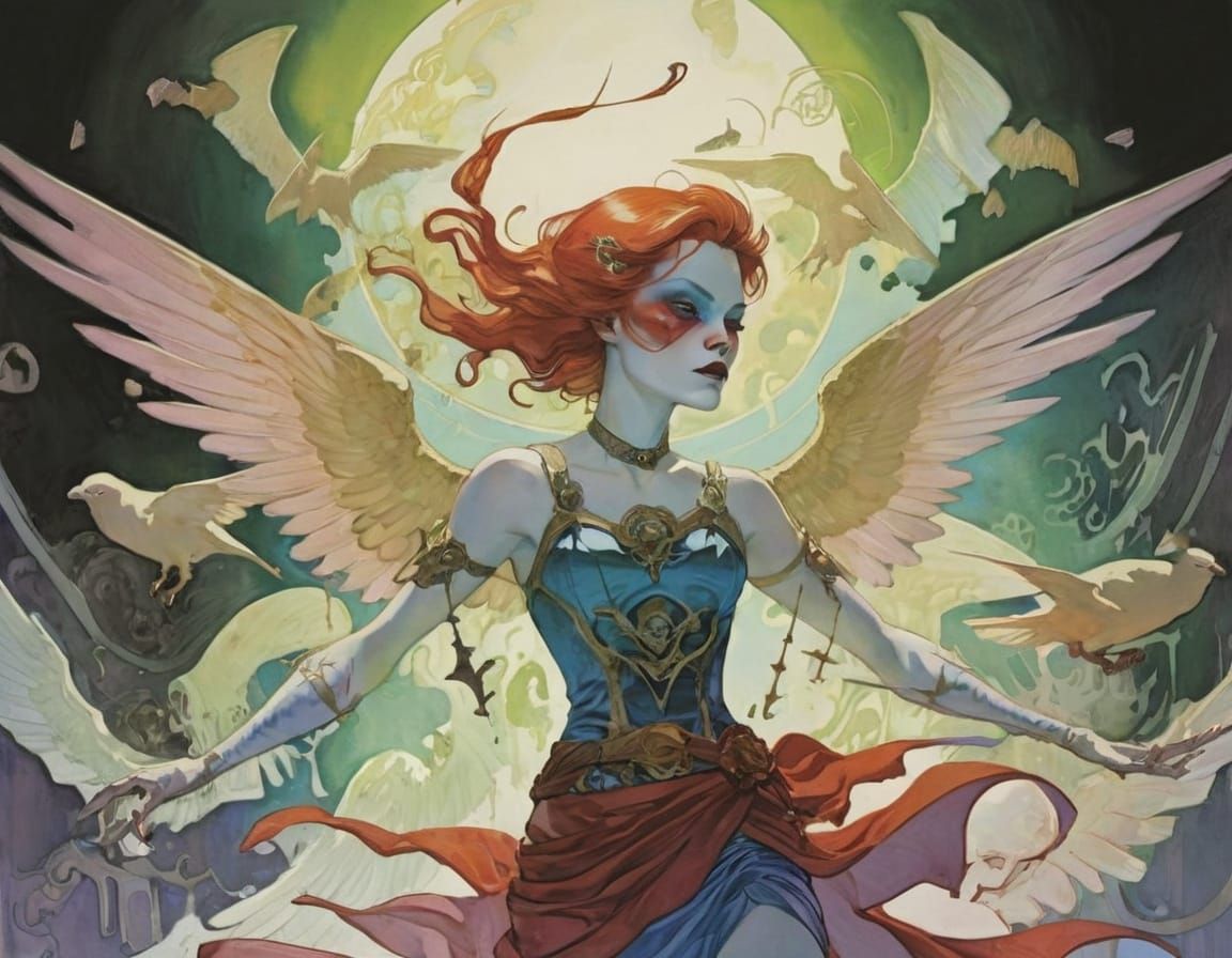 This image is an AI-generated artwork blending elements from various renowned artists, showcasing a unique fusion of styles and techniques.