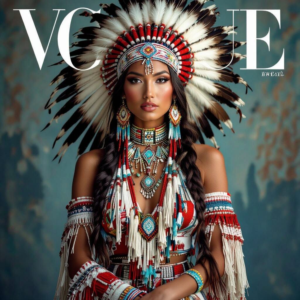 Design stunning vogue covers featuring Native American women. Free and easy AI image generation.