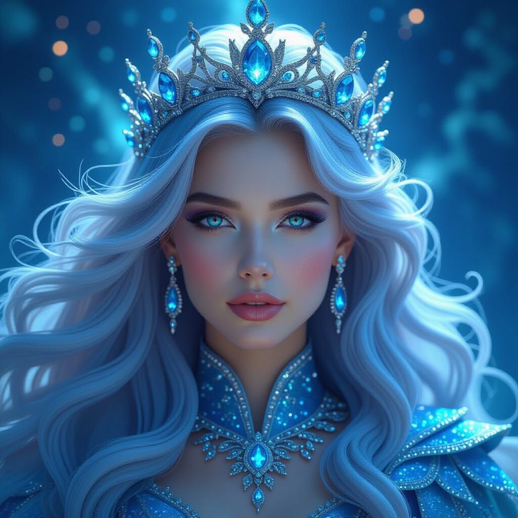A digital portrait of a futuristic queen with flowing nebula hair and a stardust crown. This captivating image showcases dynamic lighting and intricate textures, reminiscent of art nouveau.