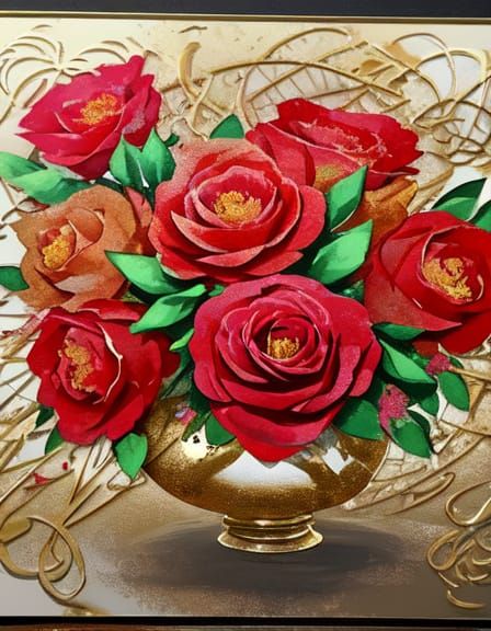 Easily create your own stunning floral images with roses, peonies, and gold foil using our free AI generator.