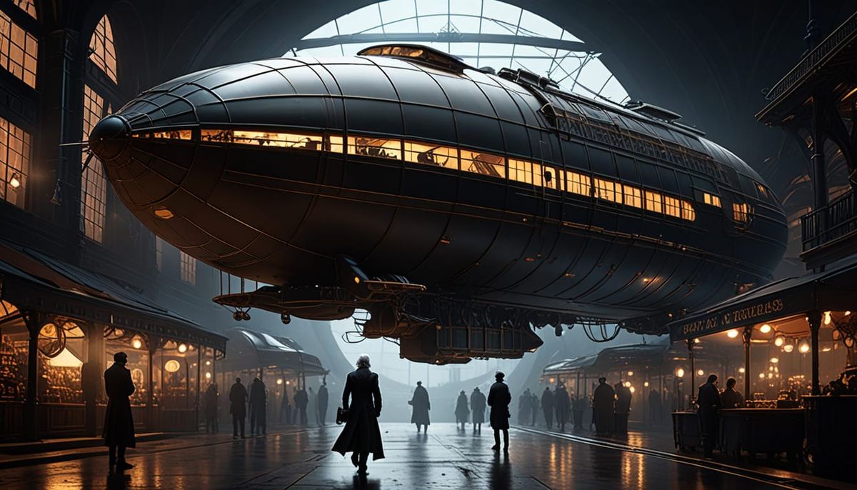 A striking picture of a silver-haired woman in brass armor and a man in a dark coat in a marketplace. The image is photorealistic with soft brass textures and warm bronze tones in a steampunk aesthetic.