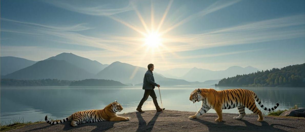 Heaven over lake;. Treading upon the tiger - Progress without blame.