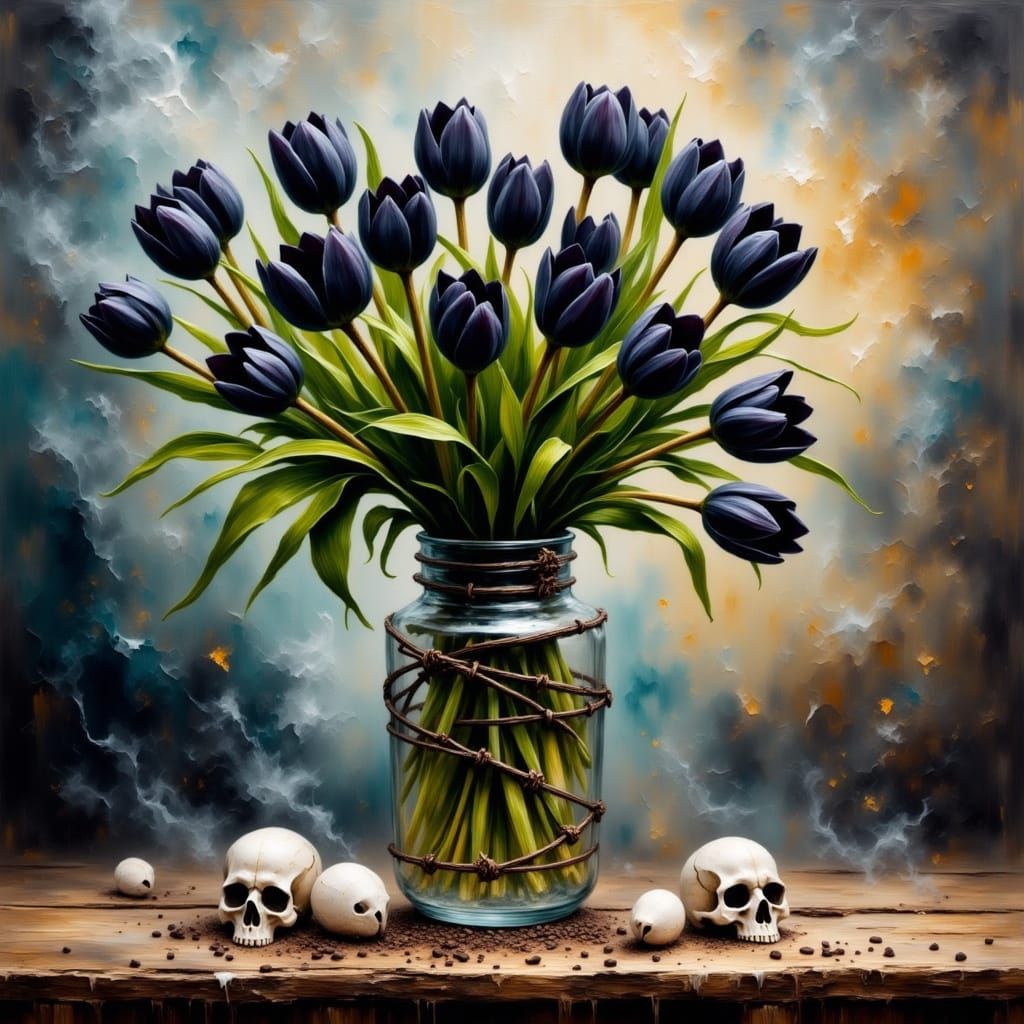 Create your own dark and striking images of barbed wire and skulls with our free and easy AI image generator!