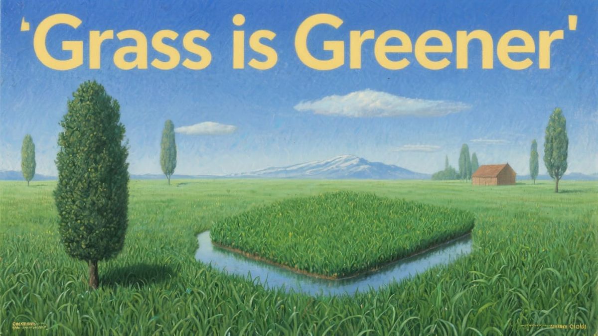 A surreal landscape showing impossible geometry and dreamlike imagery. The artwork evokes a sense of mystery and contemplation, reminiscent of surrealist paintings.