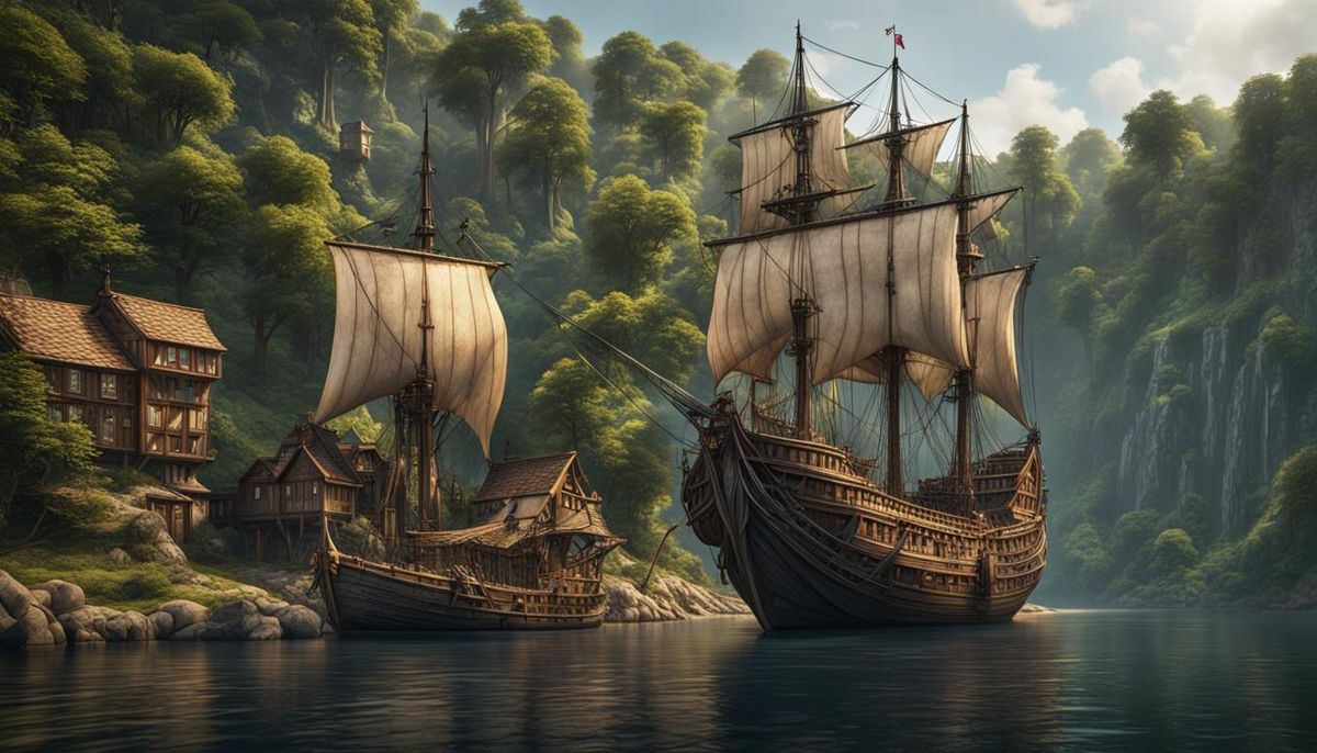 Create your own dramatic scenes of ships and medieval villages with our free AI image generator.