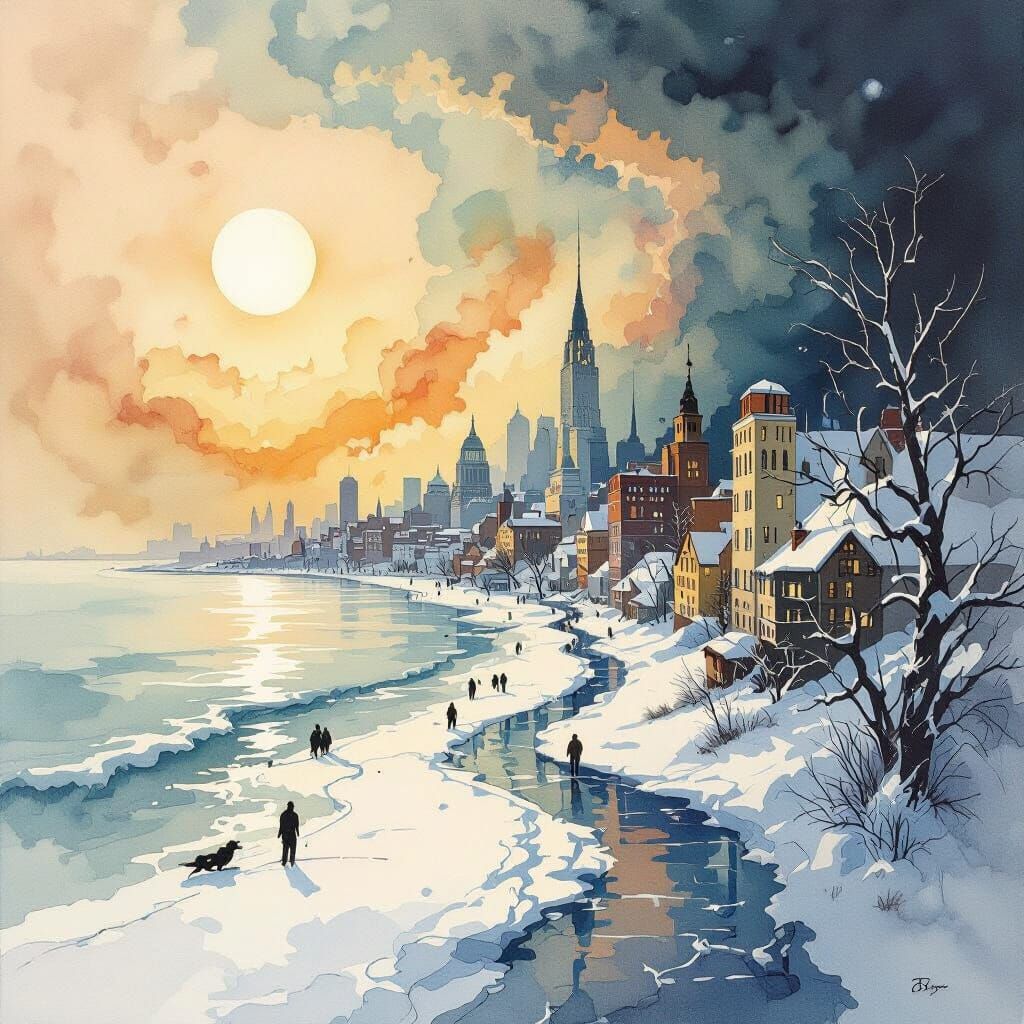 This image depicts a detailed landscape with rich tones, rendered in alcohol ink with textured impasto. It captures the essence of changing seasons, inspired by the artistic styles of Odilon Redon and Milo Manara.