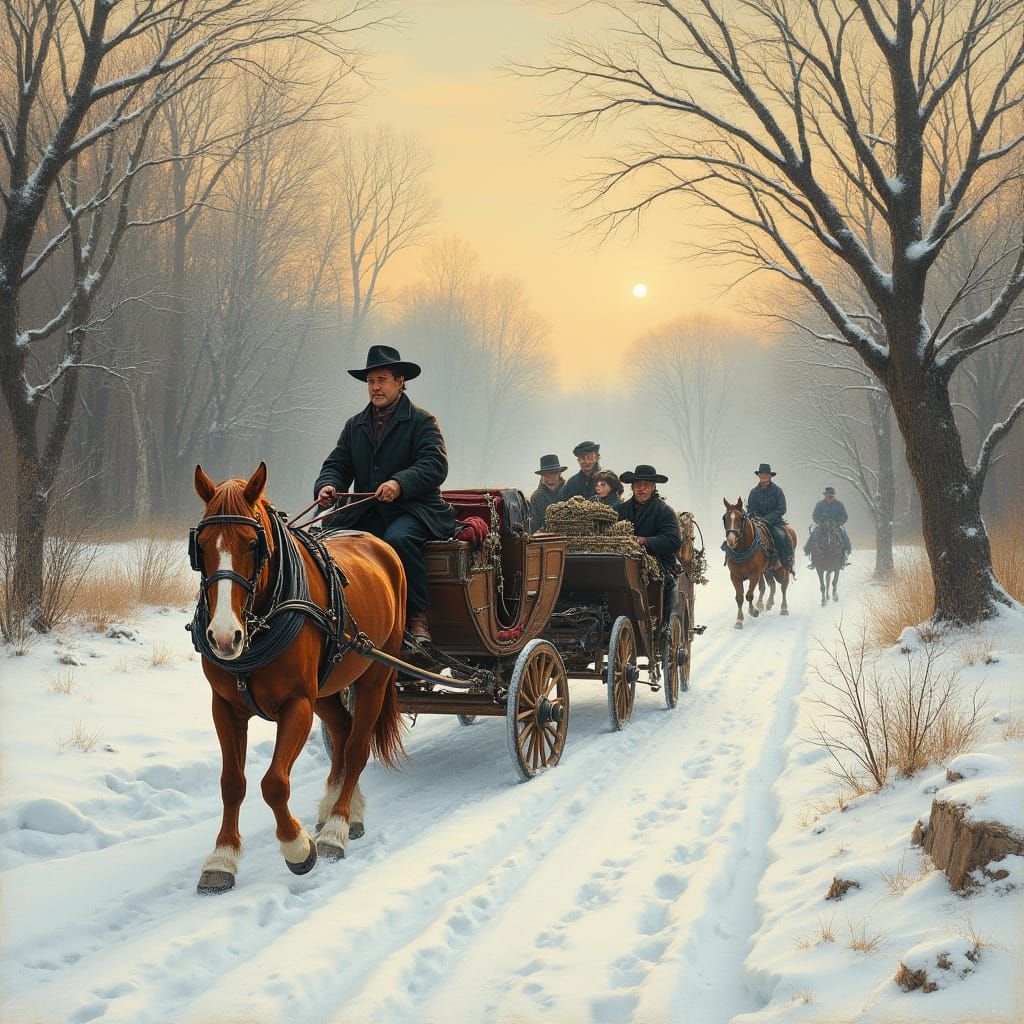 Create your own historical scenes of horse-drawn sleighs in the snow with our free and easy AI image generator.
