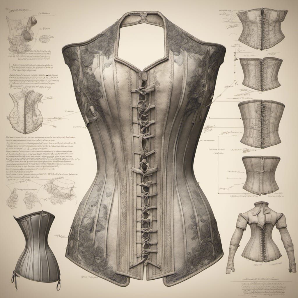 Dive into historical fashion! Create your own detailed diagrams of 16th-century corsets with our AI image generator.