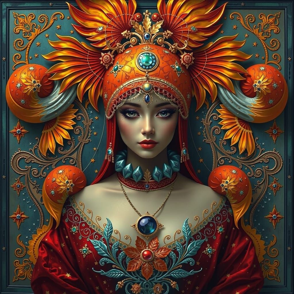 A stunning image of surreal glass art with vivid colors and geometric patterns. The artwork features nautilus and Tribonacci-Lucas curves in a psychedelic, Jugendstil aesthetic.