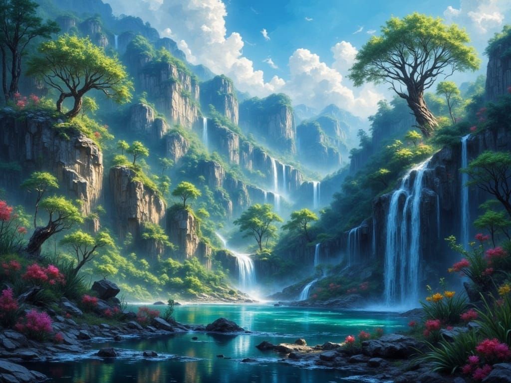 Generate your own vibrant jungle waterfall scenes with our free and easy AI image creator. Unleash your creativity!
