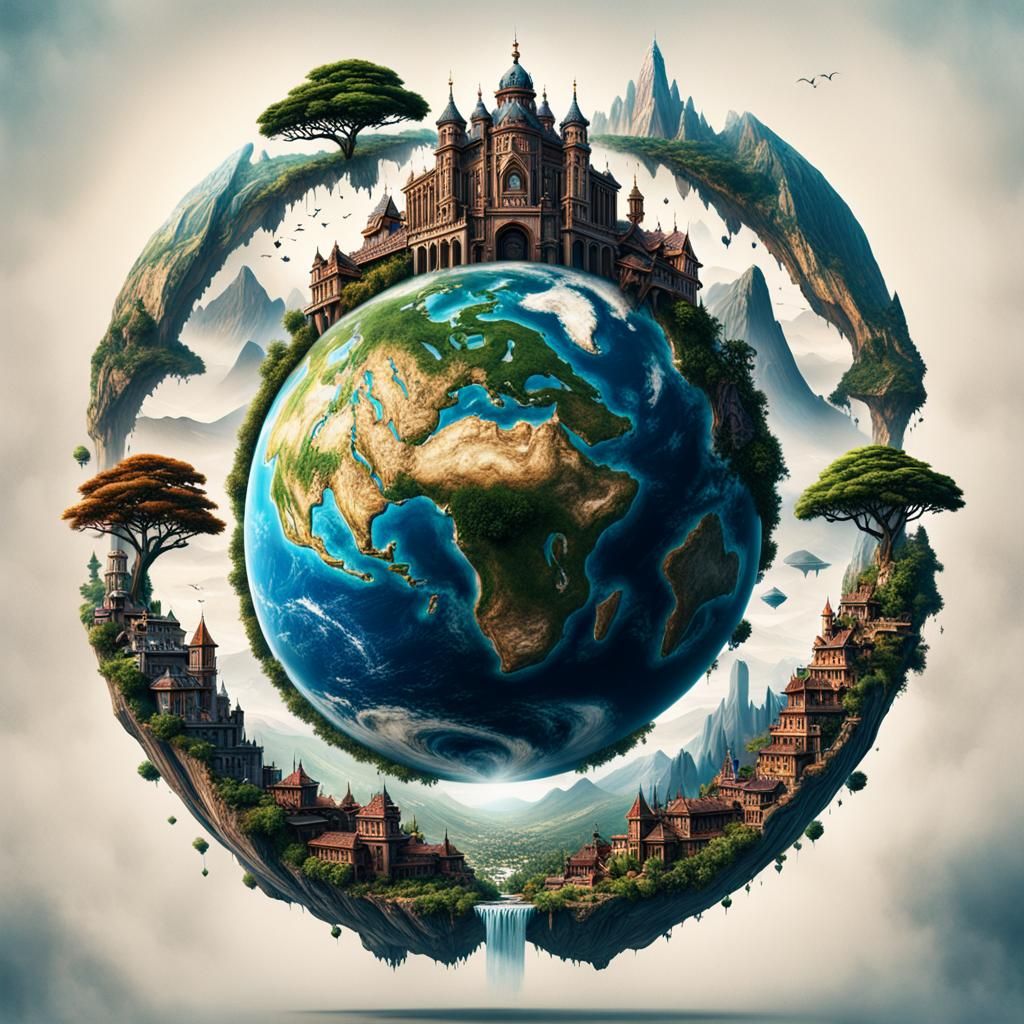 A hyperrealistic image of Earth emphasizing unity and intricate detail. The composition is cinematic and atmospheric, enhanced by high contrast and sharp focus, creating a visually stunning and dramatic piece.