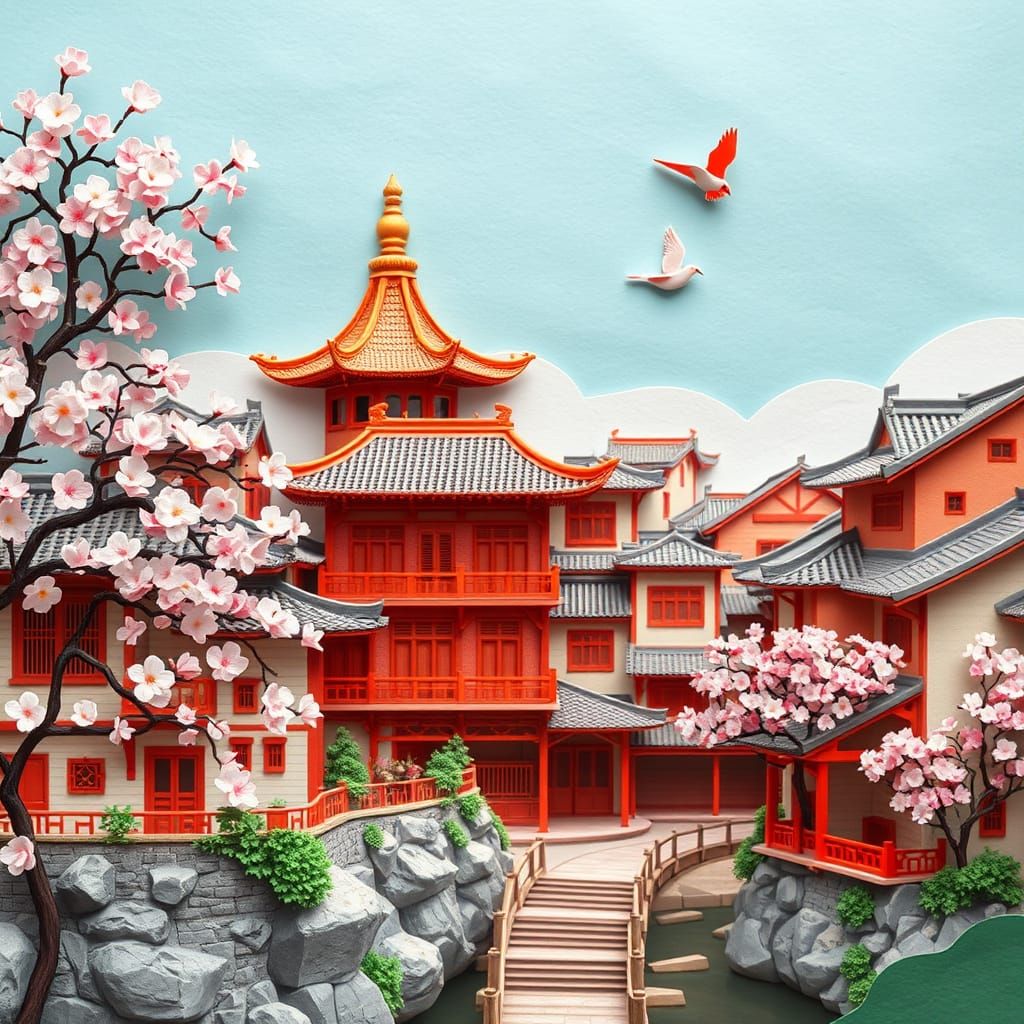 Easily design your own Chinese town scenes with flowering trees and birds using our free AI image generator