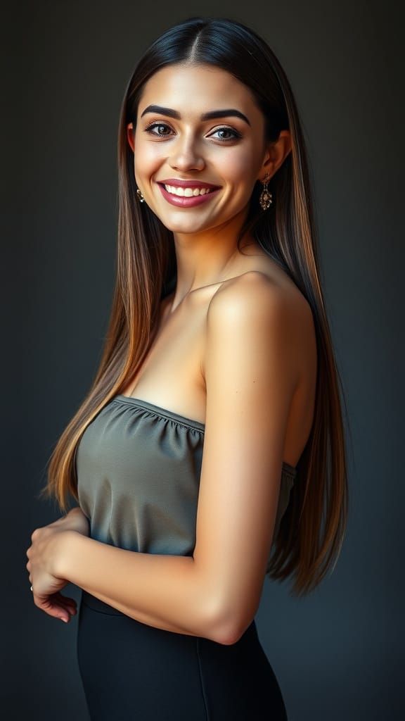 This image shows a tall, beautiful model in a confident pose. The photograph is styled with high saturation and elegant details, reminiscent of high-end fashion editorials with a focus on sharp detail and lighting.