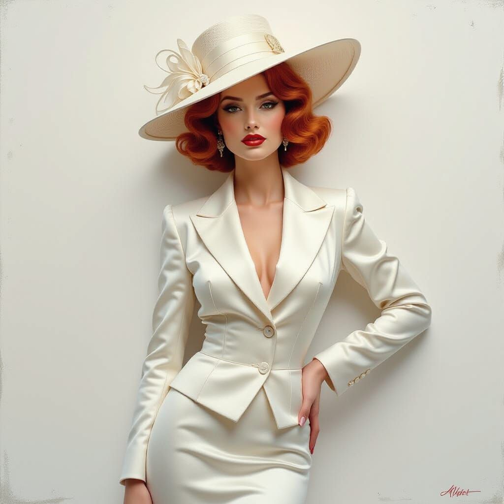 Brilliant mega detailed illustration Crayons and watercolour. matte beautiful texture of white paper, beautiful texture. Russ Mills White. Woman with loose slightly wavy hair stands leaning against the edge of the illustration sideways to the viewer, the rest of the background completely white with texture, ...