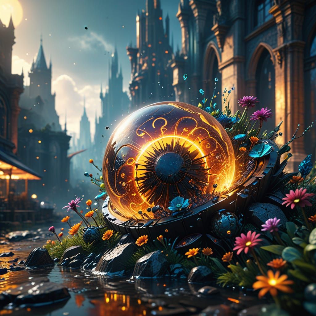This image depicts a breathtaking solarpunk cityscape, blending futuristic technology with natural, floral elements in a vibrant, colorful utopia, teeming with intricate details and majestic architecture.