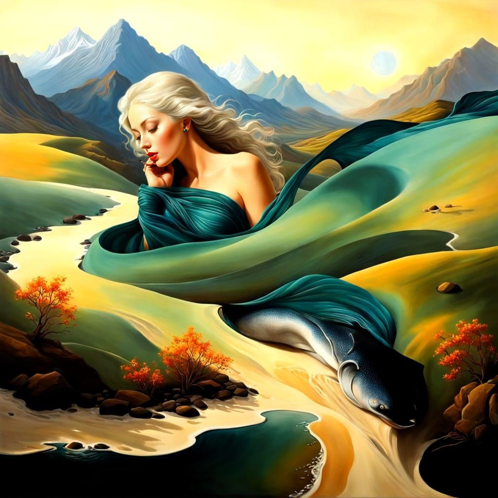 "stunning fantastic surrealistic image in the style of Max Ernst, Johfra Bosschart, Tanya Shatseva, Mikhail Vrubel, Salvador Dali, Andreas Lie, Igor Morski, Georgia OβKeeffe, Gertrude Abercrombie, Dorothea Tanning, Catrin Welz-Stein, Giorgio de Chirico, David Michael Bowers, Stewart Edmondson, smooth, polished, ultra quality, mysterious, enigmatic, intriguing, captivating stunning fantastic surrealistic painting in the style inspired by Salvador Dali, crisp, smooth, polished, ultra ..." Weight: 1