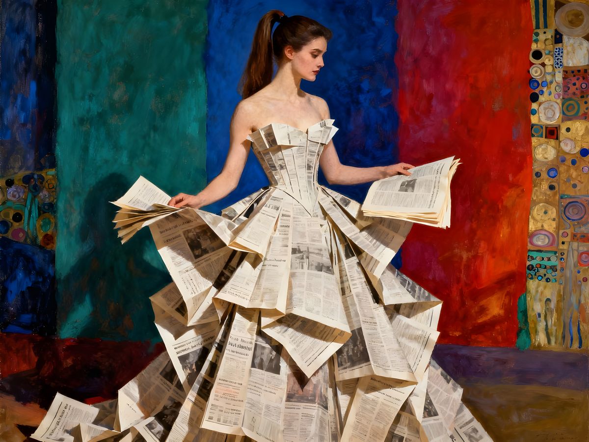 hervorragend … der Newspaperdress im zarten Spiel mit Klimt …