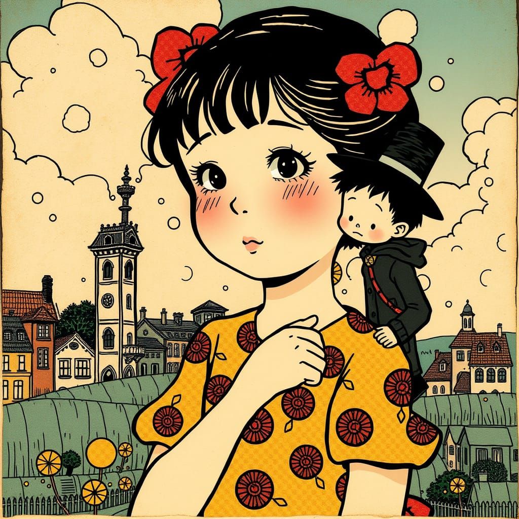 This image presents a fusion of artistic styles. It blends watercolor techniques with cartoonish elements and impressionistic painting to capture a unique aesthetic.