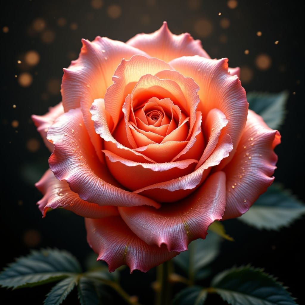 Easily generate your own hyperdetailed, photorealistic roses with glowing transparent petals and water droplets. Try it free!