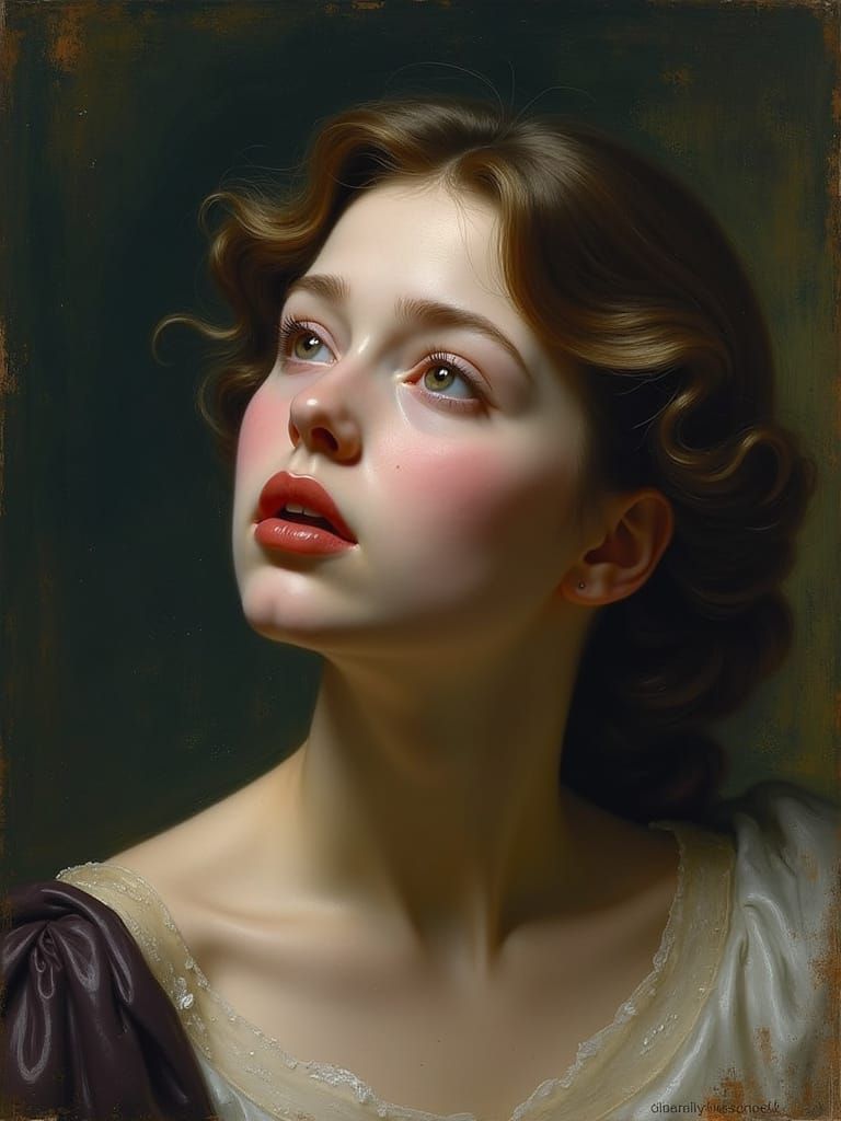 This image showcases a highly detailed portrait in a classical Renaissance style, reminiscent of Old Masters. The composition features rich textures and dramatic lighting.