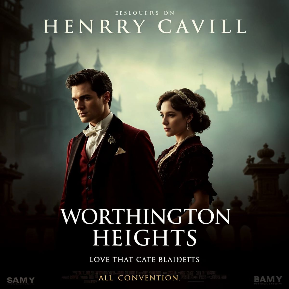 A movie poster for a Victorian romance, "Worthington Heights," featuring classic movie poster design elements and a tagline about enduring love.
