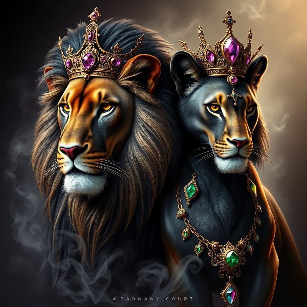 Craft unique images of majestic lions with crowns and jewels. Free and easy AI image generation.