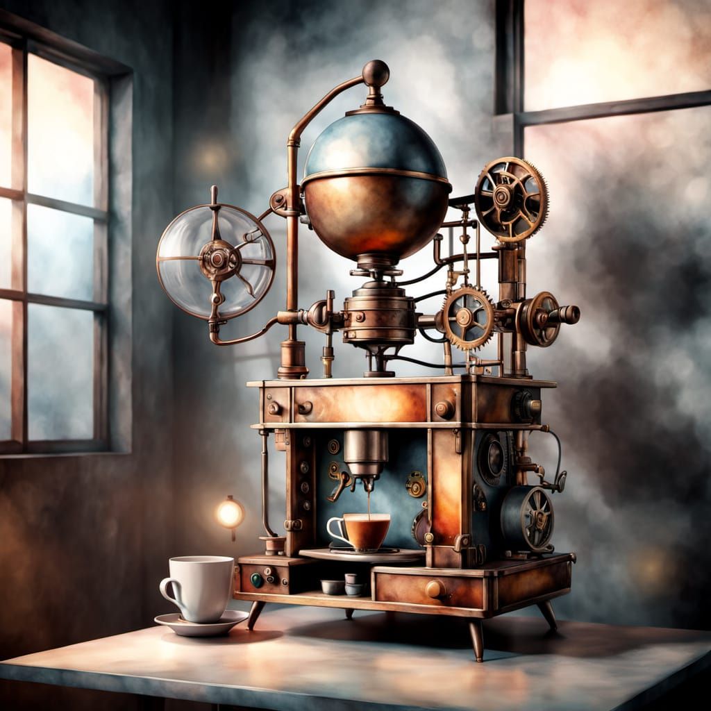 Easily generate unique steampunk coffee machine images with our free AI tool. Unleash your creativity and design your own!
