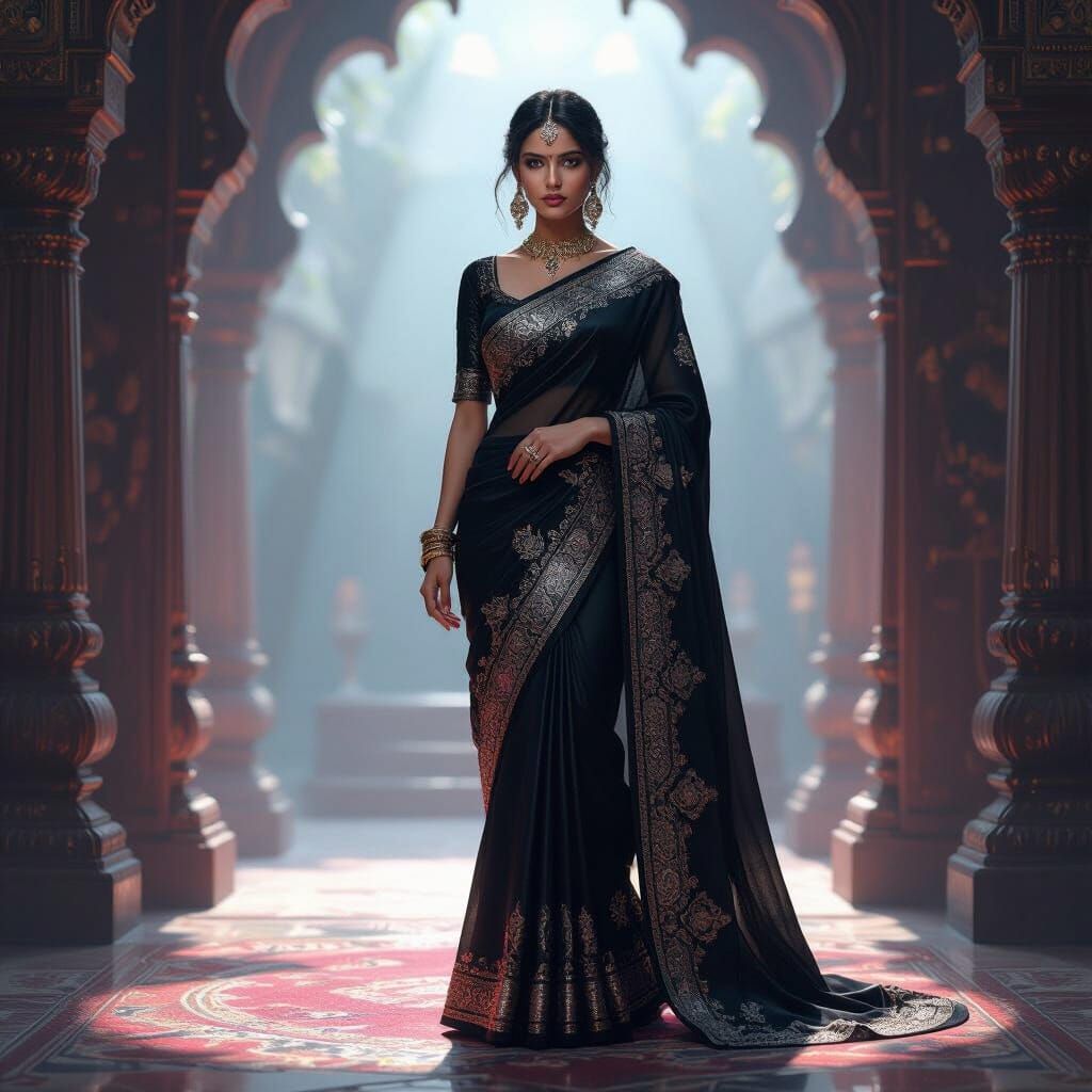 Generate stunning images of women in sarees with dramatic lighting. Free and easy to use AI image generator.