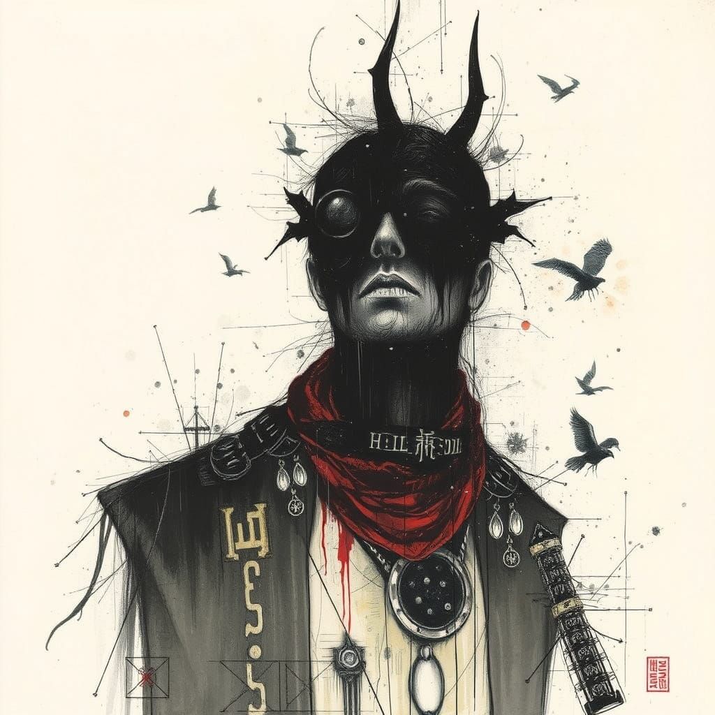 This image showcases a surreal compilation of artistic styles. It features the intricate linework of the Renaissance, contrasted with modern dark fantasy and surrealist illustration.