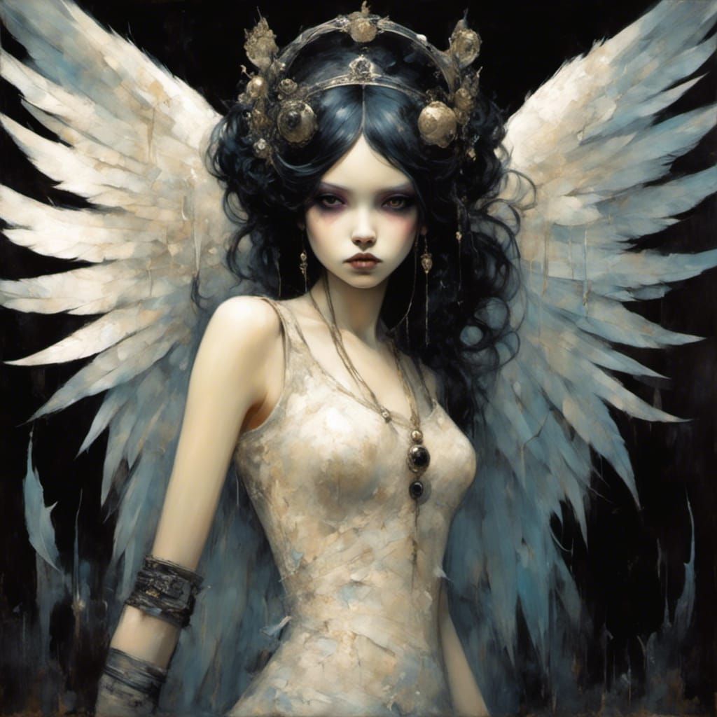 <lora:Liquid Ink:1.0> <lora:Macabre:1.0>A pouty goth punk girl in art brut style, art by Greg Simkins, Shaun Tan and Benjamin Lacombe, moody but cute, mischievous but serious