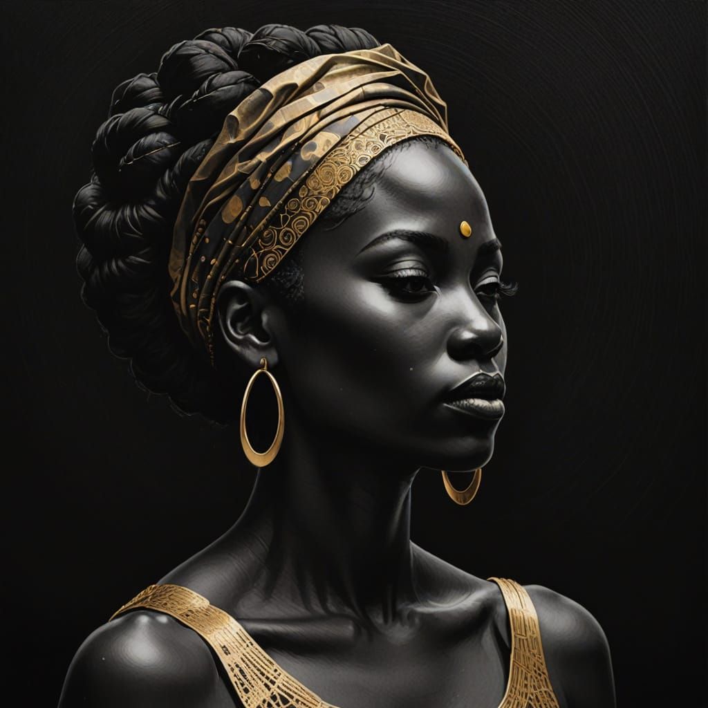 This image shows a minimalist ink drawing of a black woman's profile. A single, elegant line forms her silhouette, enhanced with delicate dots to convey depth and a meditative mood.