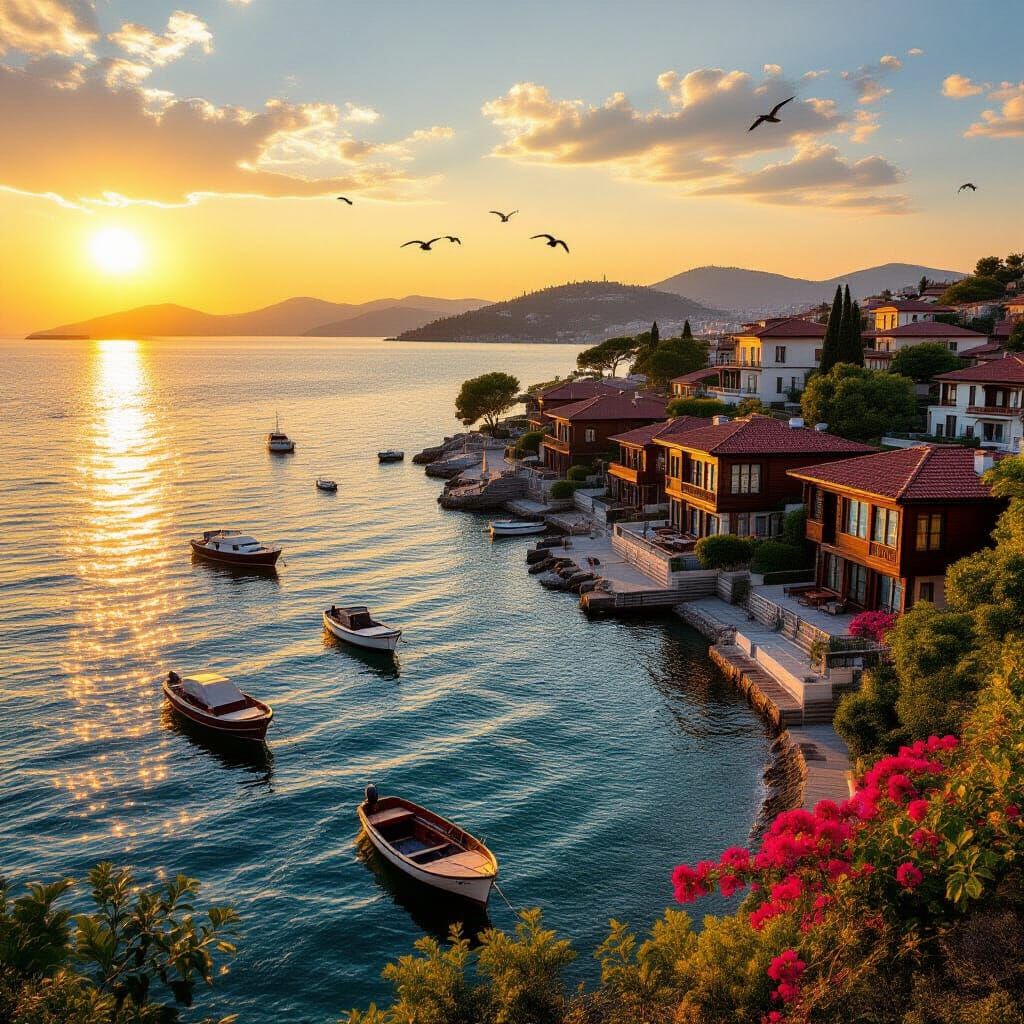 Generate your own captivating images of the Princes' Islands at golden hour with our free and easy AI tool. Perfect for your creative vision.