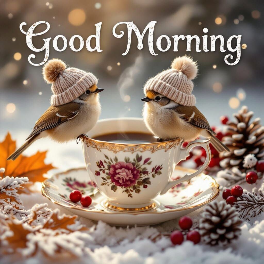 Generate your own cozy morning scenes with cute fluffy birds! Free and easy AI image creation.