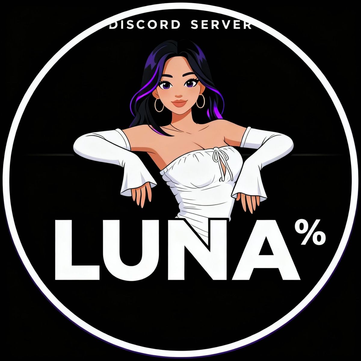 This image is a Discord logo featuring a central figure with subtle purple highlights in her hair. It is enclosed by a circular border against a black background, with adjusted foreground elements.