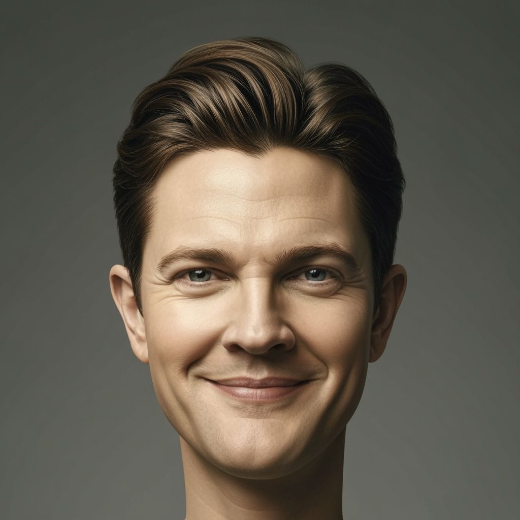This image shows a succulent plant sculpted to resemble Drew Barrymore's face. Soft studio lighting accentuates the plant's plump leaves and captures Barrymore's features in a botanical illustration style.