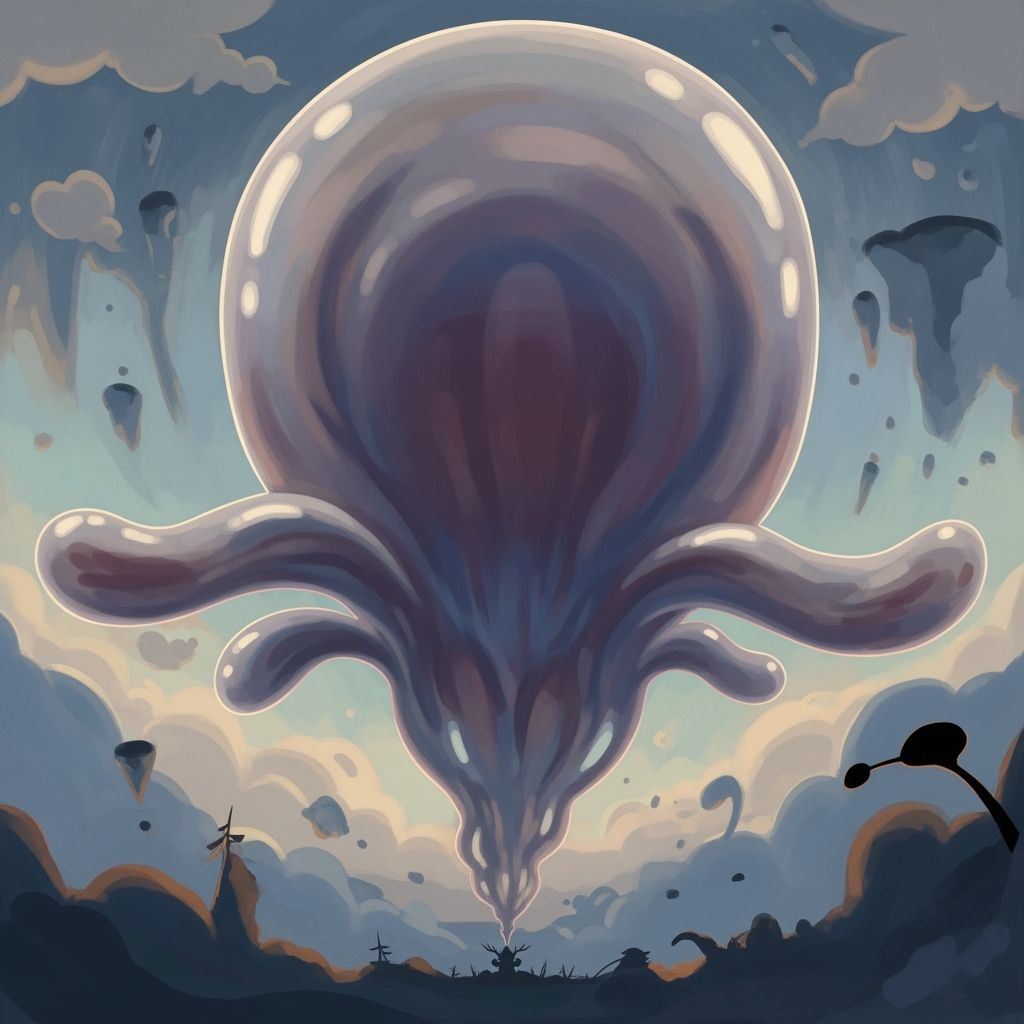 This image depicts a colossal sigh as swirling, ethereal mist with balloon-like proportions. It features soft, blended gradients reminiscent of layered washes and a luminous, ethereal glow.