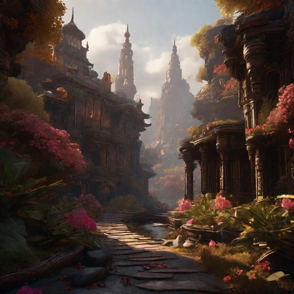 A stunning 8k resolution dark fantasy concept art piece. The artwork features dynamic lighting, intricate details, and deep colors in a purple and yellow complementary palette.