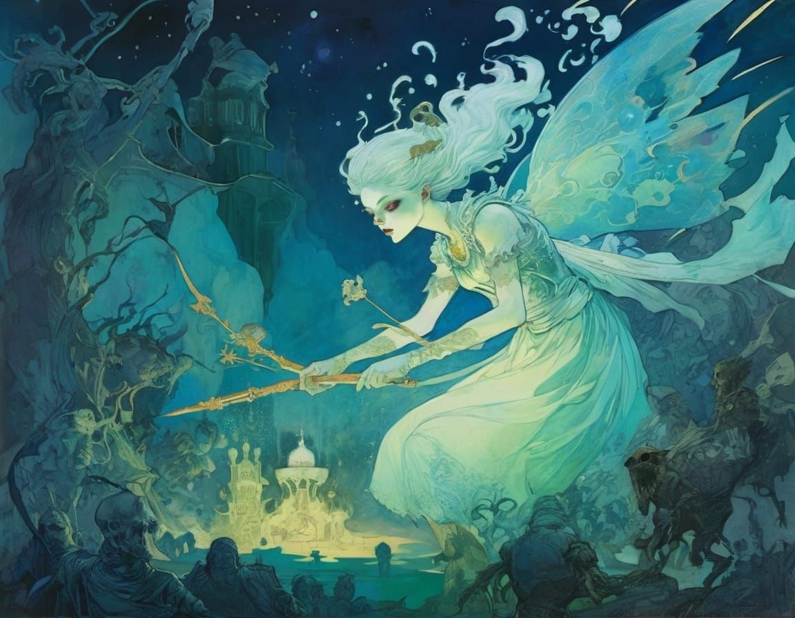 A striking visual fusion of figurative and abstract styles, drawing inspiration from the distinct artistic approaches of renowned painters and illustrators.