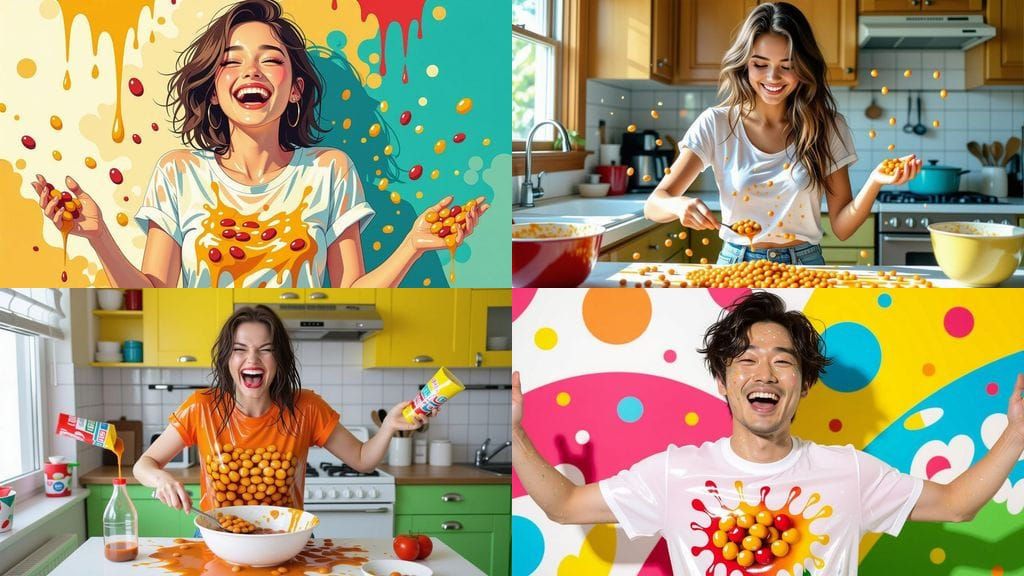 This image depicts a sensual scene of a wet t-shirt with baked beans, showcasing a playful and messy atmosphere, with a focus on texture and transparency.