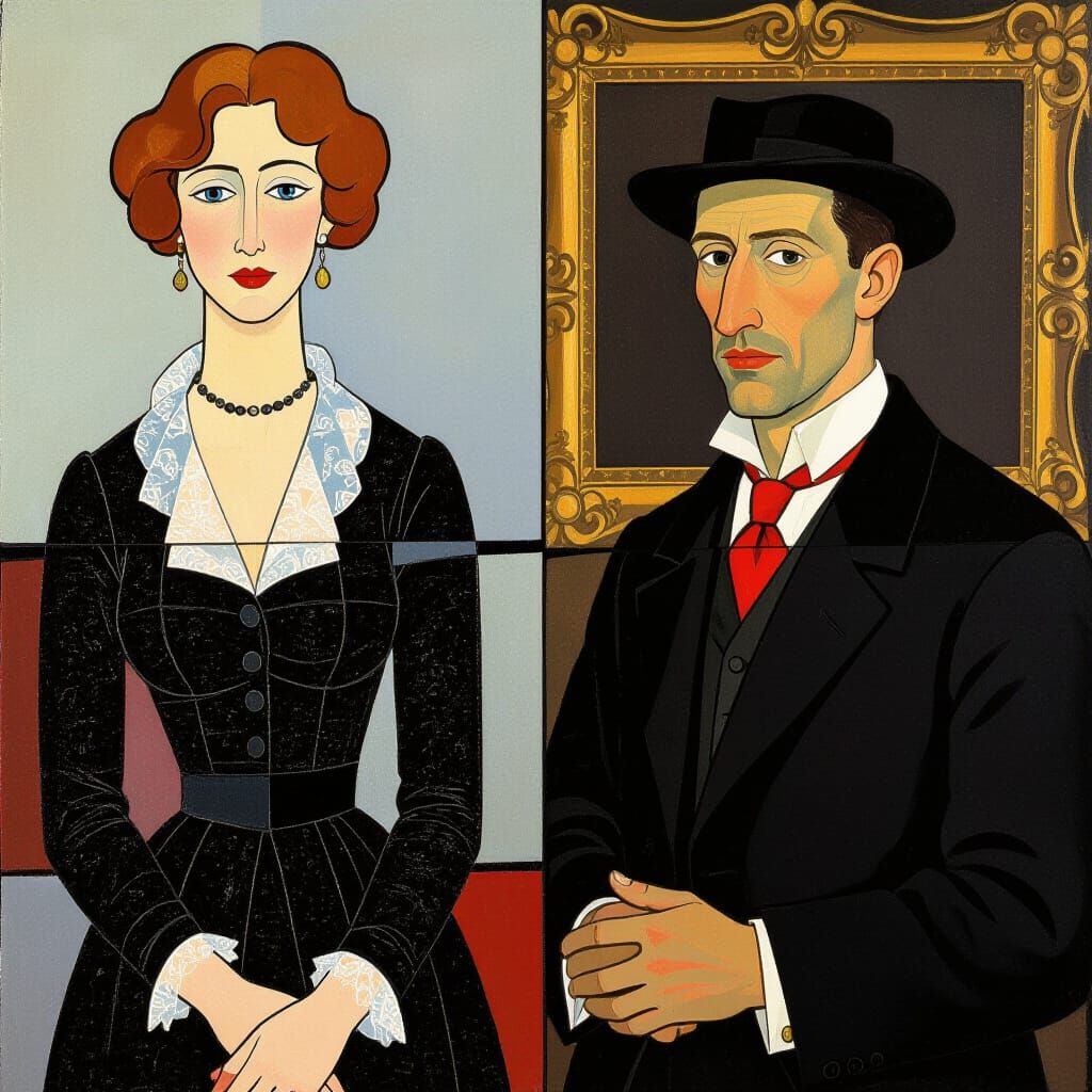 This image blends a giraffe and a hog, reminiscent of portraits by Modigliani and Holbein. The artwork combines elongated forms with realistic Renaissance details.