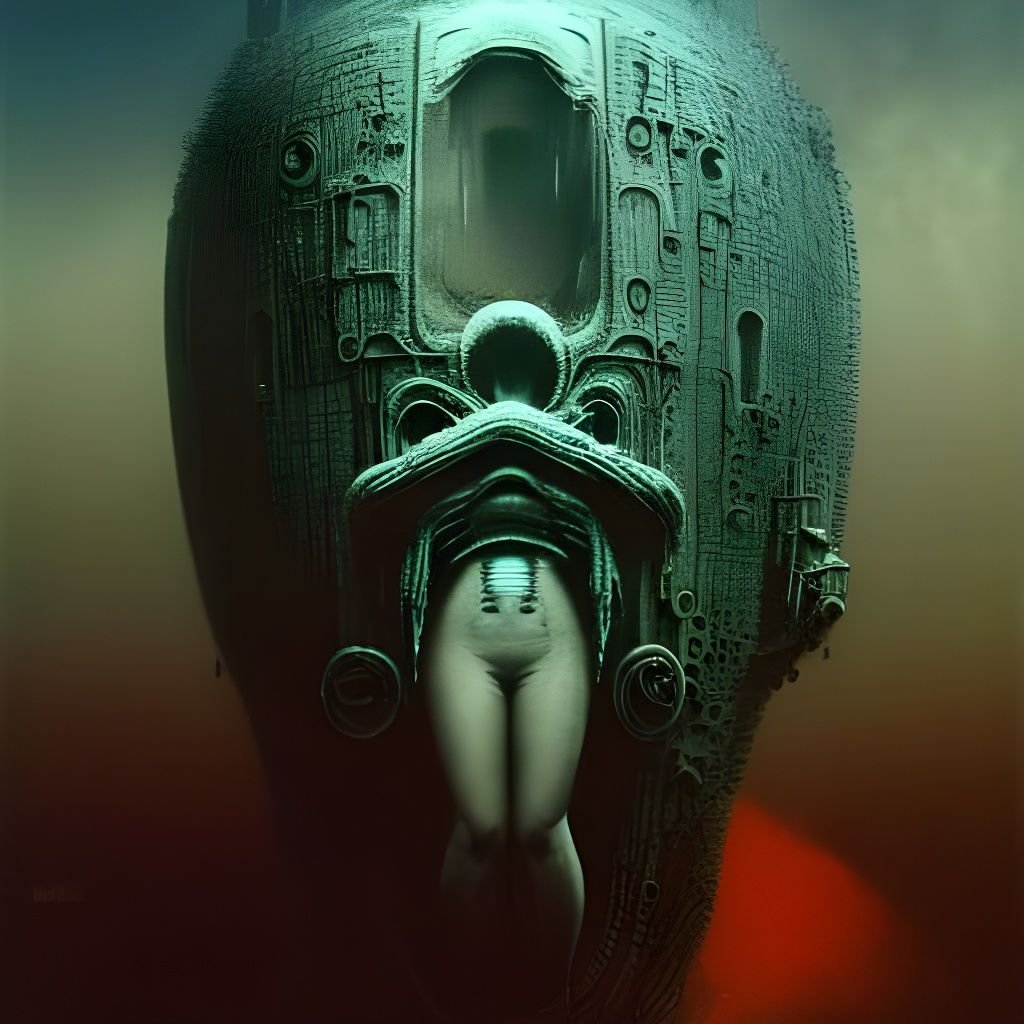 Unleash your dark imagination with our AI image generator. Create your own nightmarish retrofuturistic visions for free!