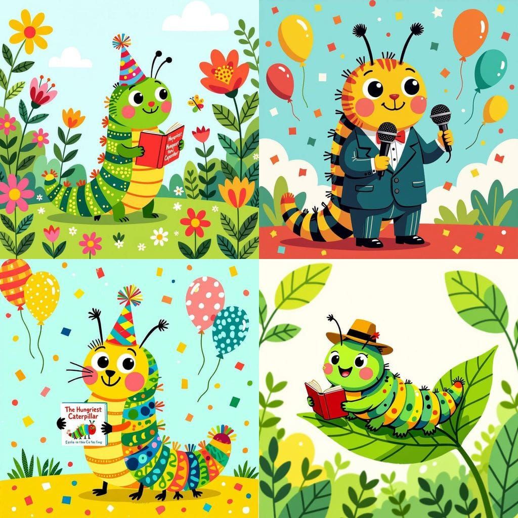 This image portrays an excited caterpillar seeing itself in "The Very Hungry Caterpillar." It captures the whimsical scene of a children's book illustration.