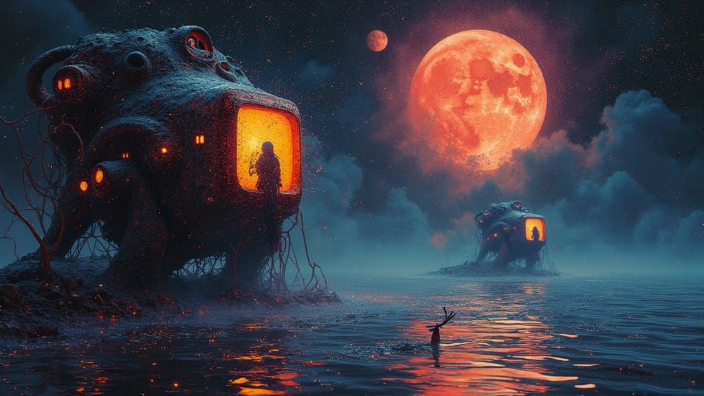 the psychic television wacky overlapped rotoscope unterwelt situationist photomontage jerkbait lunatics from neighborworld, the woim toins in the thinless d'onofrios, luminescent dust waves eyes UV neon backlit darkly 3D fractal chromoshadow surrealastic predisposition by artist "special extradimensional ...