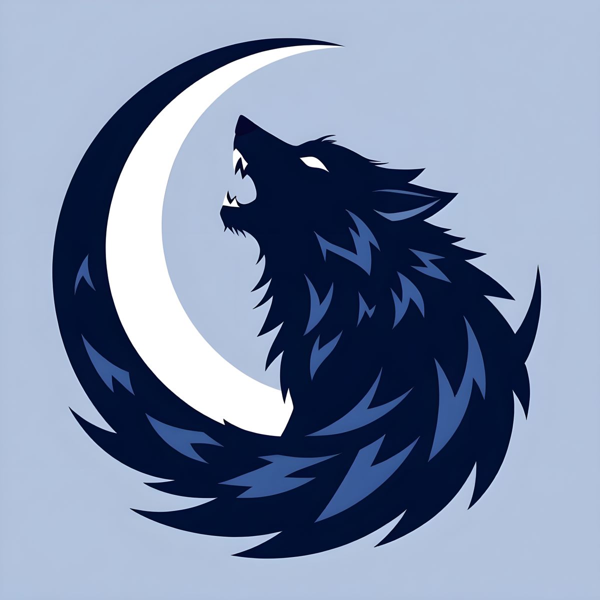 This image features an abstract symbol representing a werewolf, integrated with a moon element. The design is minimalist and modern, suitable for a logo.